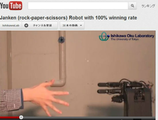 勝率100%のじゃんけんロボを東京大学の研究者が作り出した。人間とじゃんけんすると必ず勝つという。