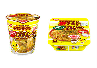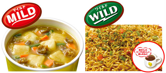 マイルドカレーは、チキンラーメンの麺にまろやかな味わいのカレースープを合わせた。ワイルドカレーはチキンラーメンのカップ焼そばで、スパイシーなカレーソースに、香り高いカレースパイスのふりかけが付いている。湯切りしたお湯は、大きめのマグカップ1杯分のスープになり、麺と一緒に楽しめる。
