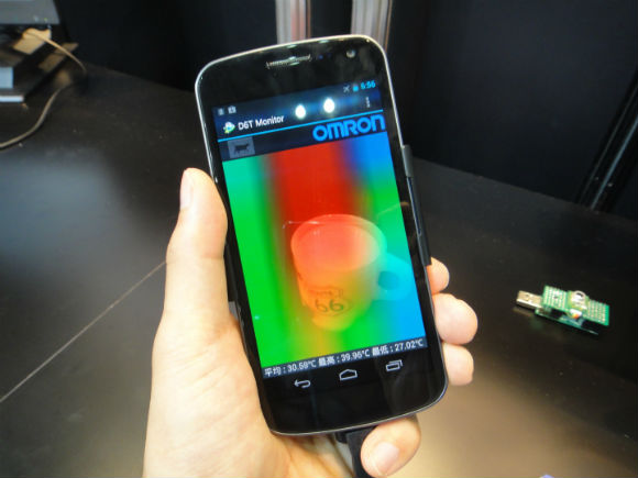オムロンの高感度非接触温度センサを使えば、スマホを飲み物にかざして適温を知る「猫舌センサ」アプリもできる。