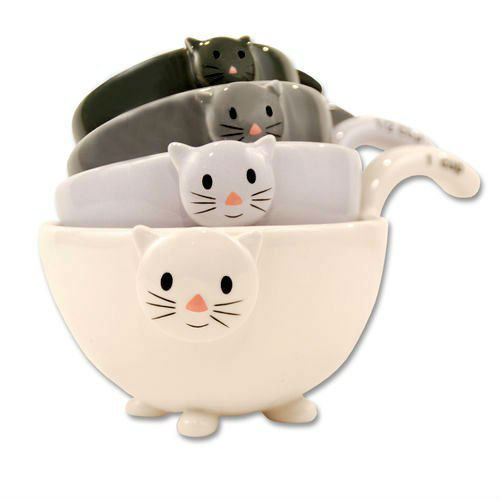 4分の1カップ、3分の1カップ、2分の1カップ、1カップが図れるサイズのカップ4つがセットになっており、それぞれネコの顔がついています。クリーム、ライトグレー、ダークグレー、ブラックの4色。米Amazon.comで22.94ドルで販売されています。