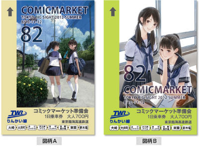 コミックマーケットカタログと同じ図柄の1日乗車券を販売する。