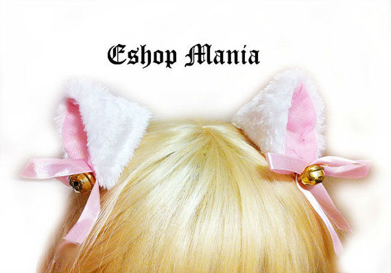 ヘアクリップで髪に留めるタイプのネコ耳で、鈴がついています。色は外側が黒や白、トラ柄などがあり、内側はピンク色。サイズは6センチほどで、価格は2.99ドル。