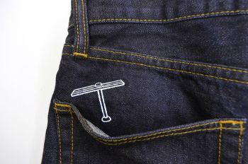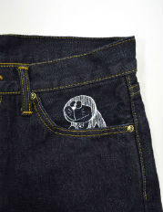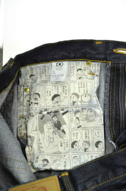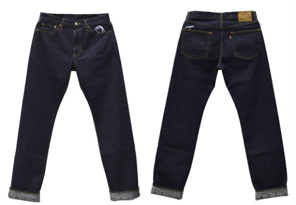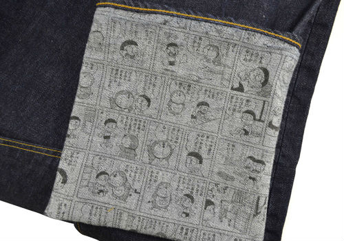 前ポケットには初登場シーンのドラえもん、後ポケットにはタケコプターのプリント入り。リベットは、ドラえもんの誕生日にちなんで左から2・1・1・2・9・3の数字が入ったものを使っている。裾や内ポケットにはコミック柄が入っており、100年前記念ロゴ入り革パッチとドラえもんのシルエットが入ったピスネームも付く。