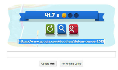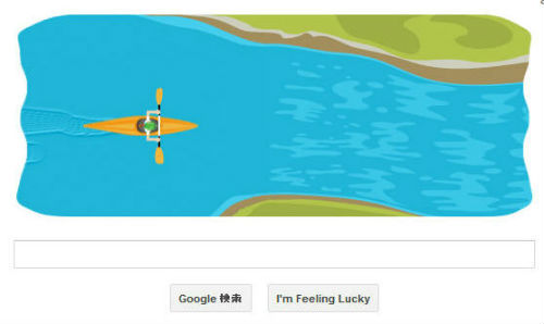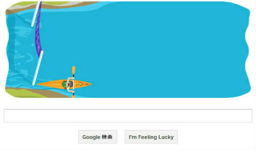 ハードルバスケとオリンピックにちなんだミニゲームを提供しているGoogleのトップページ。8月9日はカヌースラロームのゲームが遊べるようになっている。