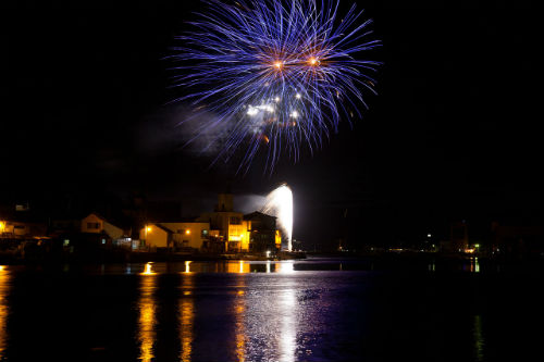 ラストでは、出演者・関係者全員が登壇し、水光呼子港まつりの花火カウントダウンを実施。ニコニコ町会議会場でのカウントダウンを受け港まつりの花火が上がると、会場だけでなくネット視聴者からも歓声コメントが書き込まれ、花火を眺めながらニコニコ町会議は終了した。
