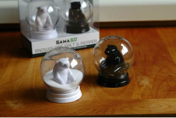 スノードームといえば、球形やドームの形の容器にミニチュアとスノーフレークが入っているものですが、スノードーム風の容器に塩・こしょうを入れる「Snowglobe – Salt & Pepper Shakers」は食卓を楽しくしてくれそうです。