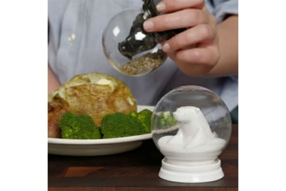 ご飯が楽しくなるスノードーム風の塩・こしょう入れ