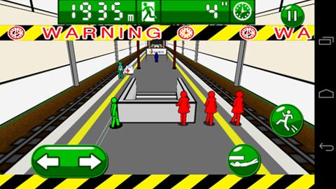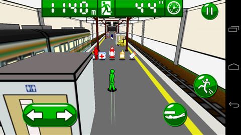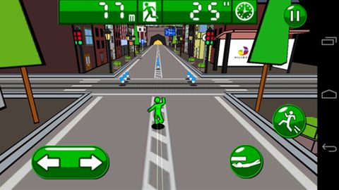 どんどん走っていると障害物が多くなったり、歩いてる人が左右に高速移動や追いかけてくる仕掛けもあったりするので避けてダッシュ!