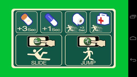 左右に移動、ジャンプ、スライディング操作でアイテムを取って、障害物を避けて制限時間内にひたすらトイレを目指してダッシュするだけです!