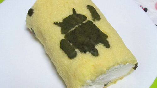 Androidのキャラクター“ドロイド君”をデコったロールケーキを作ってみました。