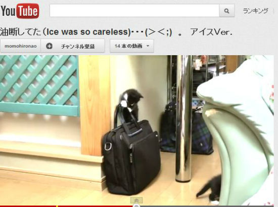 カバンに上って遊んでいた子ネコが、ついうっかり。