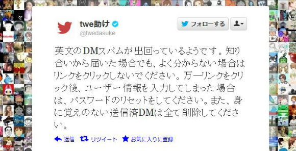 TwitterでスパムDM出回る 「フォロワー100人ゲット」に注意