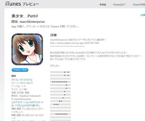 「美少女…Putti!」のダウンロードページにはでかでかと「ブラは外せません」の文字。「あの伝説の『美少女ブラ外しPutti!』がただの時計アプリになり下りやがりやがったぞ!」という自虐的な紹介文からも、復活に至るまでの苦労をうかがうことができる。