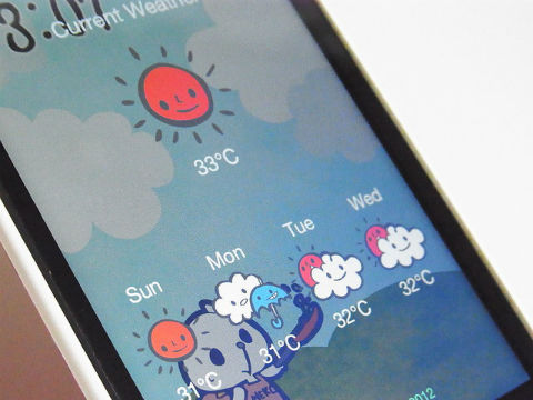 右上の太陽をタップすると天気予報を教えてくれます。GPS機能をONにするとその場所の天気を教えてくれます♪