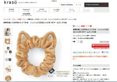 「シュシュにもなるにゃん耳つきアームバンドの会」製品ページ