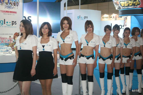 会場でひときわ目立っていたのが、gloopsのコンパニオンたち、彼女たちのおかげで、展示しているものが霞んでしまうほど