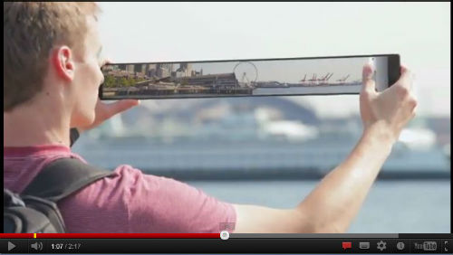 Appleの公式動画風に、開発者っぽい人のトークとiPhone 5を使っている場面を組み合わせているのですが、公式と違うのはiPhone 5がものすごく長いこと。たぶんiPhone 20くらいの長さです。画面が長いからスクロールしなくていいし、パノラマ写真も一発、「FaceTime」は顔だけじゃなく全身映せる「BodyTime」に。なんて便利! ズボンのポケットに入れづらいけど……。