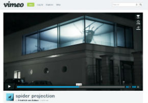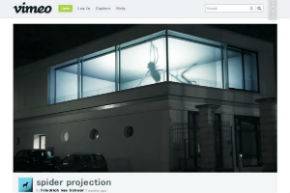 このトリックは、容器に入ったクモの映像を全面ガラス窓のビルに投影するというもの。容器とビルの窓の縦横比をちょうど同じにするのがキモで、それにより実際にビルの中に蜘蛛がいるかのように映像を投影できます。ドイツのアートカレッジのFriedrich von Schoorさんがこの手法を使った動画を投稿しています。