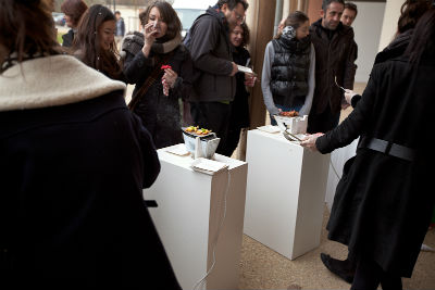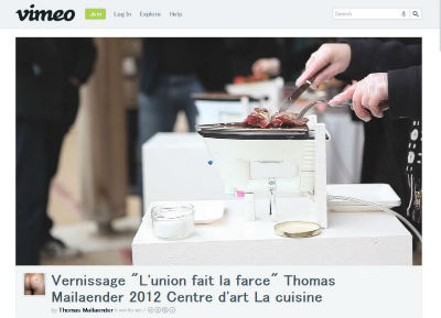このアイロンバーベキューは、9月に開催された展示会のオープニングで、デザイナーのThomas Mailaender氏が行ったもの。逆さにしたアイロンを台で支え、その上で肉を焼いて来場者に振る舞っていました。