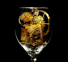 マシンが芸術に――ワイングラスの中で動く精密機械がステキです。