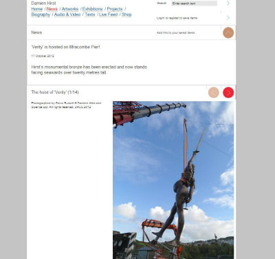 Verity設置を自身のサイトで伝えるDamien Hirst氏