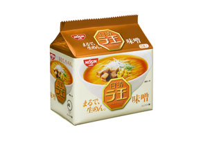 「日清ラ王 袋麺」がトッピング付きで出てくる。