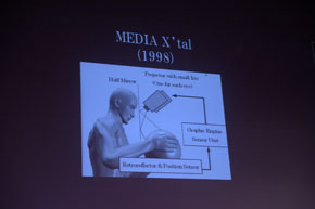 稲見教授 研究室に配属されたとき、議論したければまずはこれを読めと研究室の必読書「攻殻機動隊」を渡され、光学迷彩という言葉を初めて知りました。もともとCTなどで撮影した人体の内部映像を立体映像として見せる研究を行っていたのですが、再帰性反射素材をマネキンに貼り付けて投影する方法に行き着き、(透明プリウスでも使われた)光学迷彩のアイデアにつながりました。