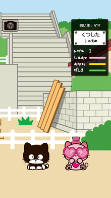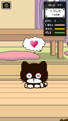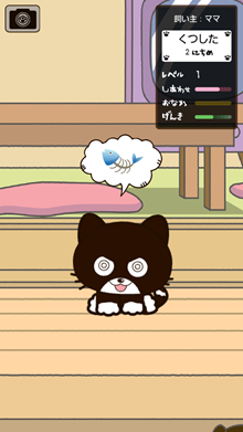 右上の枠内には猫のステータスがしあわせ、おなか、元気の3つで表示されるのでご機嫌を取りながらお世話をしてあげましょう。
