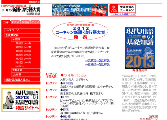 2012年のユーキャン新語流行語大賞 年間大賞は「ワイルドだろぉ」