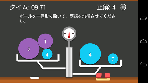 また、このゲームでは、左右に複数あるボールの中から1つ取り除き均こうさせます。