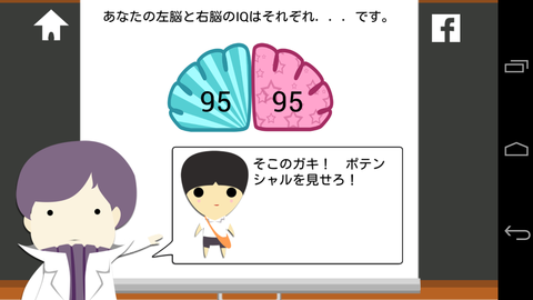 4つのゲームが終われば右脳と左脳のそれぞれのIQが表示されますよ。