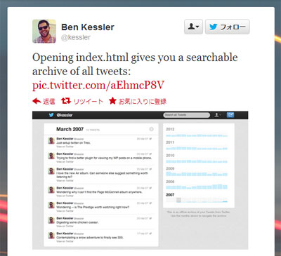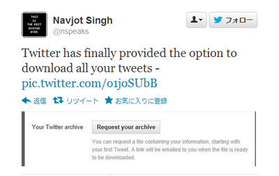 ツイートのアーカイブをダウンロードする機能、Twitterがテスト