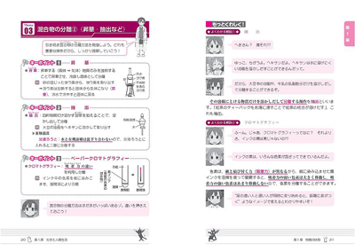 アニメ「日常」の人気キャラクターたちと一緒に「化学基礎」を学ぶ。テレビ放映で使用した場面写真も掲載しており、「おもわず、キャラクターのセリフが“脳内再生”するはず」と述べている。