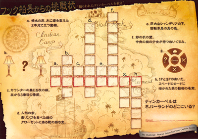 東京ディズニーランドホテルを舞台にした今回の謎解きプログラムは、ピーターパンをテーマにした「フック船長からの挑戦状〜海賊たちが残した暗号の謎」です。