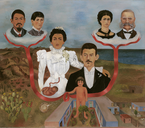 日本初公開となるフリーダ・カーロの「私の祖父母、両親そして私(家系図)」 1936年 油彩、テンペラ、ジンク板 30.7×34.5 cm ニューヨーク近代美術館蔵 Gift of Allan Roos, M.D., and B. Mathieu Roos. Acc. n.:277.1987.a-c (c) 2012. Digital image, The Museum of Modern Art, New York/Scala, Florence