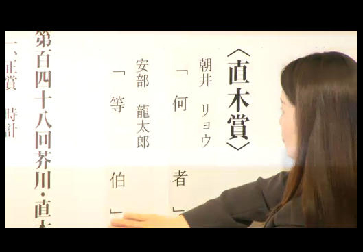 直木賞は、就活大学生を描いた朝井リョウさんの「何者」と、戦国時代の絵師・長谷川等伯の誕生を描いた安部龍太郎さんの「等伯」の2作。朝井さんは23歳と戦後最年少の受賞者。映画化された「桐島、部活やめるってよ」でも知られる。
