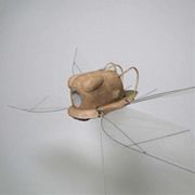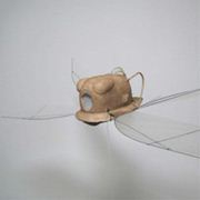 宮崎駿監督の「天空の城ラピュタ」に登場する空飛ぶ乗り物「フラップター」が、10分の1スケールのオーニソプター(羽ばたき飛行機)になった。幅600ミリ、長さ240ミリで、バッテリーを搭載したときの重量は20グラム。4枚の羽根がついていて、飛行中は自由に操縦できる。