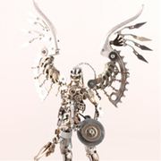 彼が金属スクラップから作った最初の作品はメカゴジラだったが、本物のメカゴジラをモデルに作ったものではなく、オリジナルだった。それ以来、彼は捨てられたスクラップを使って新しい生き物を作り続け、今に至る。不定形のパーツを使うのはたやすいが、彼は楽な道を行かない。逆にパーツの形を生かしてデザインを完成させる。彼には、不定形のパーツを使ったり、色を補うことはズルに感じられるのだ。