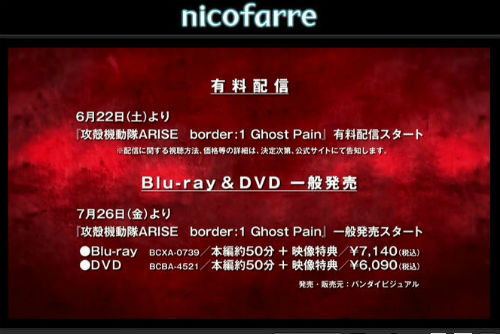 攻殻機動隊の新作アニメ「攻殻機動隊ARISE」は4部作となり、6月22日に第1作を劇場公開、Blu-ray劇場先行発売、有料配信する。2月12日、ニコファーレの発表会で明らかになった。
