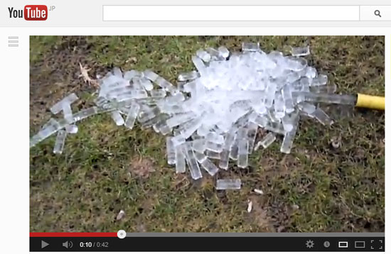 なにこれ? ホースから氷がぽろぽろ出てくる動画
