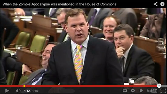 ゾンビが話題に上ったのは庶民院の質疑でのこと。Pat Martin議員がJohn Baird外務大臣に、ゾンビ襲来への備えについて質問しました。ゾンビには国境が分からないので、アメリカでゾンビ襲来が起きたら大陸全体の問題になるとして、アメリカと協力して「ゾンビ襲来をゾンビ大発生にさせない」ための国際的なゾンビ戦略を策定しているのか、とMartin議員は問いかけます。