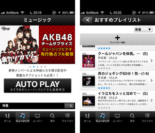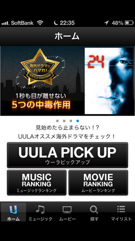 UULAのトップページには、オススメコンテンツ集となるUULA PICK UPとMUSIC、MOVIEそれぞれのトップ20があり、あれこれ探さずともアタリのコンテンツにたどり着けるようになっている。