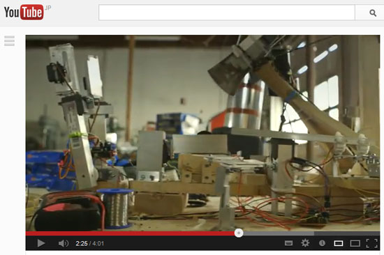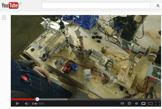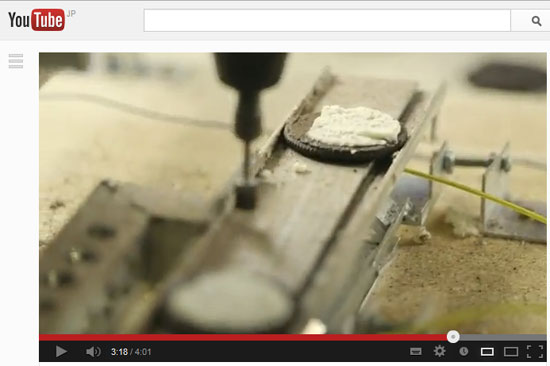 第1弾はオレオをクッキーだけにするマシン。物理学者のDavid Neevelさんが作りました。オレオをマシンに載せると、縦向きにしておので真ん中から割り、2枚のクッキーに分けます。さらにクッキーをトレイに運び、工作機械を使ってクリームをこそげ取ります。これでクリームなしのオレオの出来上がり。