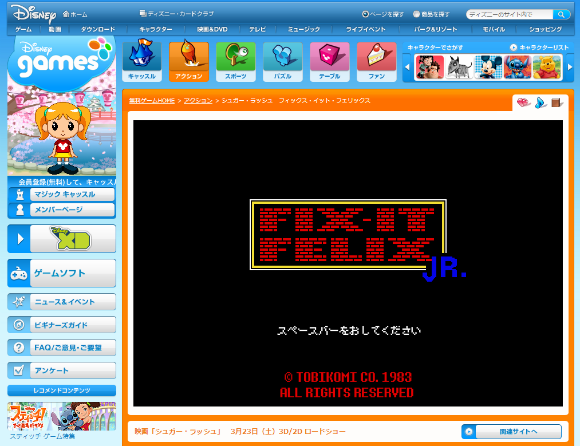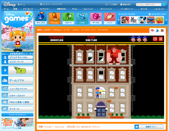 3月23日に日本で公開されたディズニー映画「シュガー・ラッシュ」。劇中に登場するアーケードゲーム「フィックス・イット・フェリックスJr.」を、ディズニーのサイトでプレイすることができる。