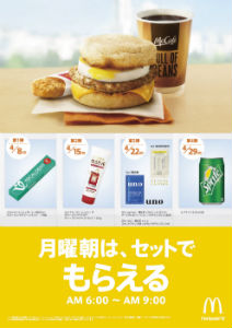 「フリーマンデー」第2弾では、朝マック商品のバリューセット購入者にグッズをプレゼントする。