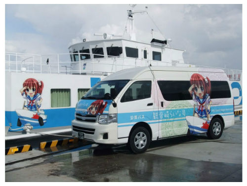 セーラー服にスクール水着のキャラを描いたバスとフェリーも登場。