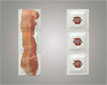 一見エイプリルフールのジョークのようですが、開発したのはベーコン関連商品を扱うシアトルのJ&D Foods。これまでにもベーコンフレーバーのローションやリップクリームなどを商品化しており、ベーコンコンドームもジョークではないそうです。同社の創業者は米メディアに対して、以前からベーコンコンドームの構想はあったが、ベーコンローションが受けるまでは作る自信がなかったと話しています。