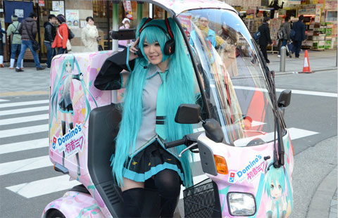 英文:World’s Only Miku x Domino’s Pizza Bike Dashes Through Akiba!