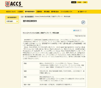 一般社団法人コンピュータソフトウェア著作権協会(ACCS)の発表文