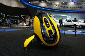 卵を立てたような形で、幅92センチ、高さ123センチと、人一人入ったらいっぱいになる大きさ。都市の狭い道を低速で走ることを想定したものです。速度とステアリングはドライバーの向いた方向や傾きで操作。後部やサイドのパーツは取り外し可能で、駐車スペースを節約できます。